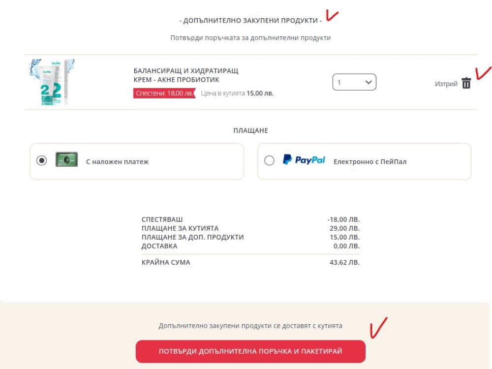 Допълнителните продукти се записват в отделна поръчка и се доставят заедно с кутията в една обща пратка.