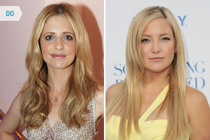 Ultimately your haircut is dependent on your face shape, so women with longer faces will want to keep their hair shorter. But the rest of us should feel free to wear longer hairstyles (while we still can). Fowler says to aim for a longer, versatile cut in your 30s, one you can wear curly, straight, up, down, whatever (long layers like Sarah Michelle Gellar's and Kate Hudson's are a great option). This gives a more youthful vibe and still lets you play with your hair without drastic measures like a Mohawk or neon-pink hair color. Speaking of which ...