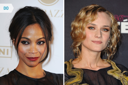 Fowler says that face-framing updos like Zoe Saldana and Diane Kruger's soften fine lines and are way more age-appropriate than slicked-back buns. She suggests using your fingers instead of a brush to pull back your hair whenever you put it up. This way it'll end up a little messier (in a good way) and less severe.