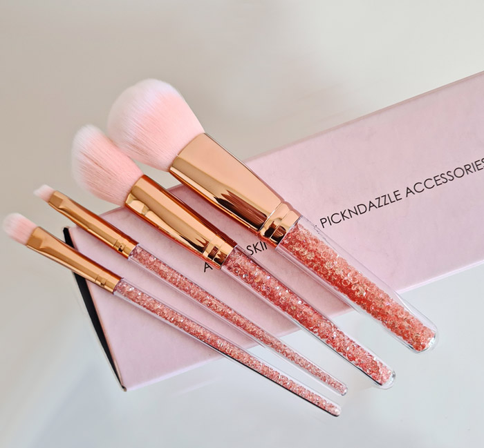Diamond Rose Gold Makeup Brush Set of four brushes - Powder Brush, Blusher Brush, Make Up Blender Brush, Make Up Angeled Brush